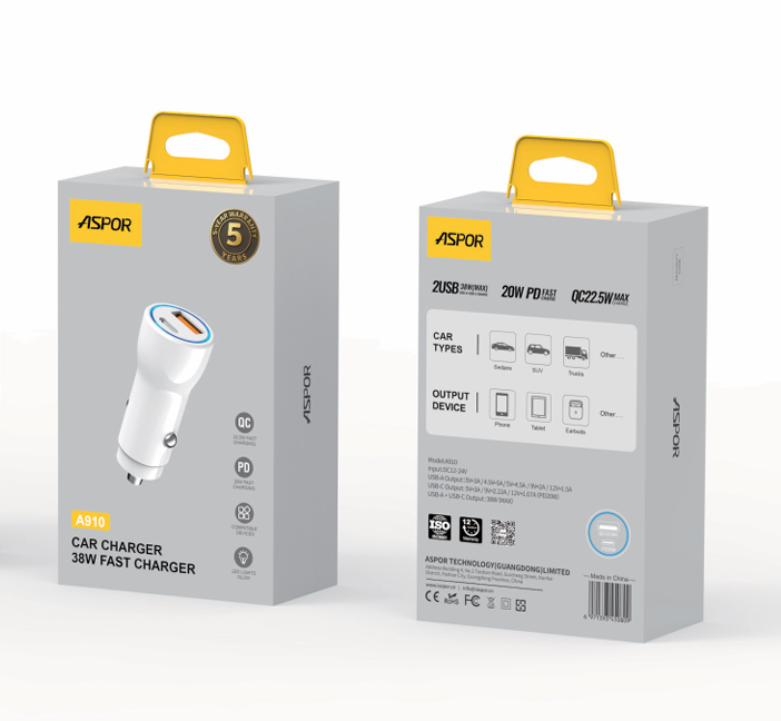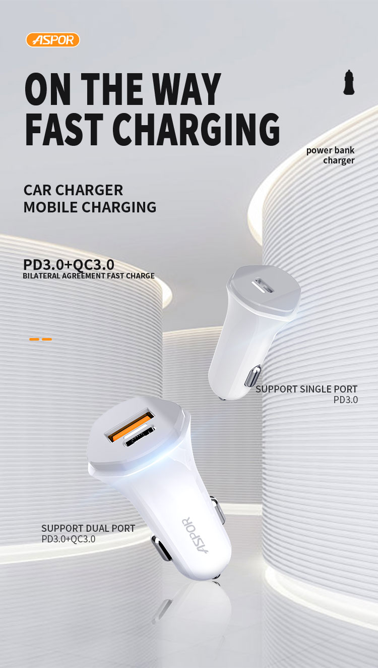 استمتع بشحن أجهزتك بسرعة وأمان أثناء القيادة مع شاحن السيارة ASPOR A907.